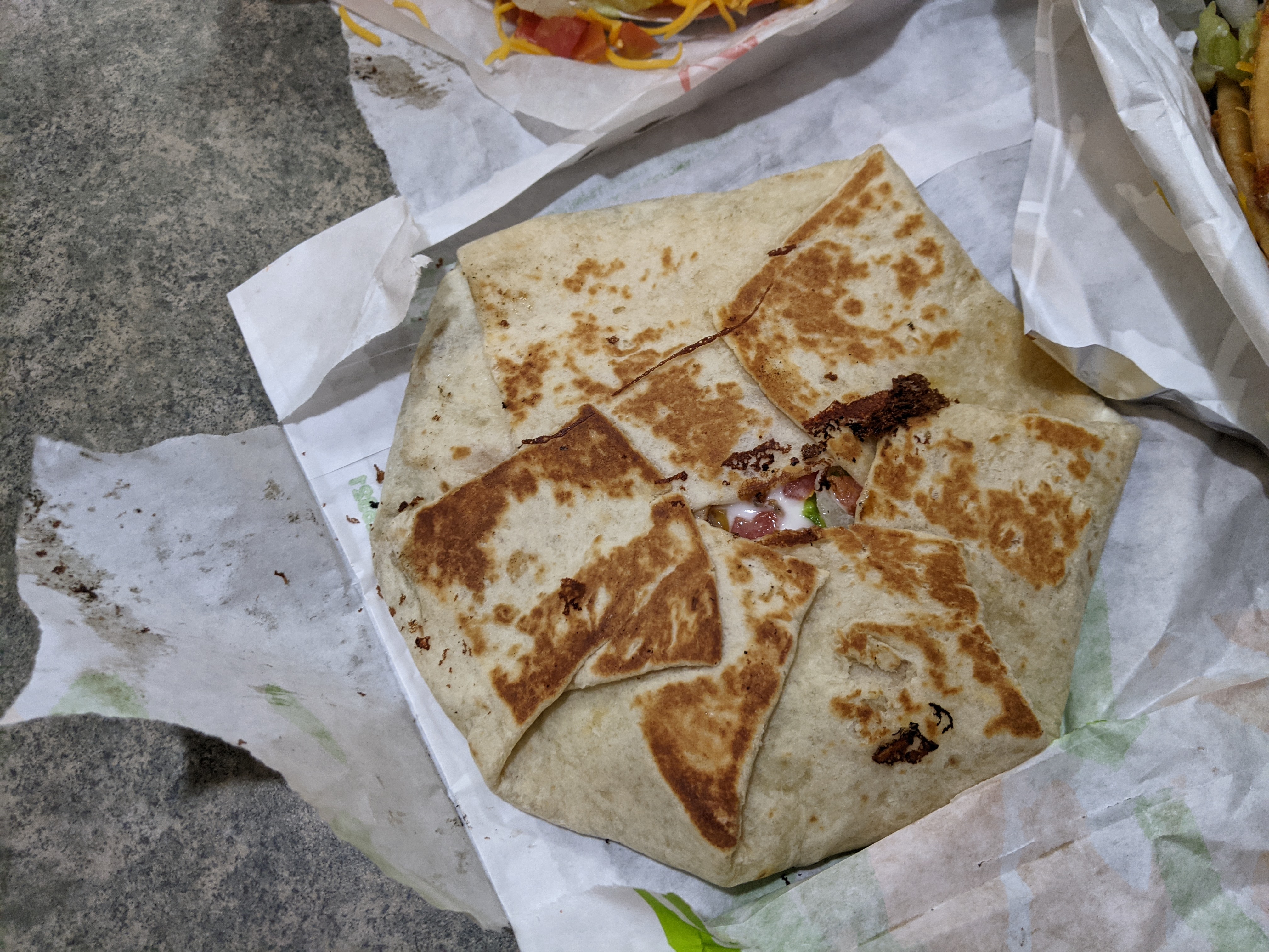 다른 음식들에 비해 부드러운 토르티야에 내용물은 예시 사진과 많이 달랐지만 괜찮았어요.